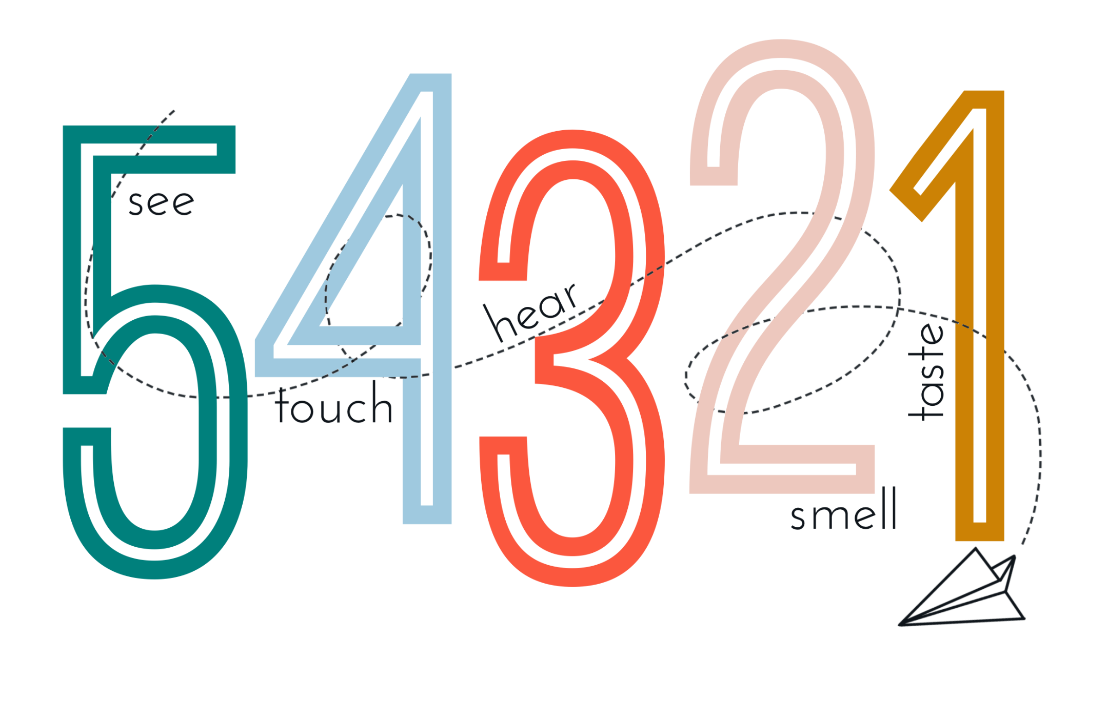 The 5-4-3-2-1 grounding technique is a simple, sensory-based method to help children (and adults) refocus on the present moment when feeling overwhelmed by anxiety or distress. It involves using the senses to bring awareness back to the current environment, providing a mental "anchor" and breaking the cycle of anxious thoughts. Here's how it works: